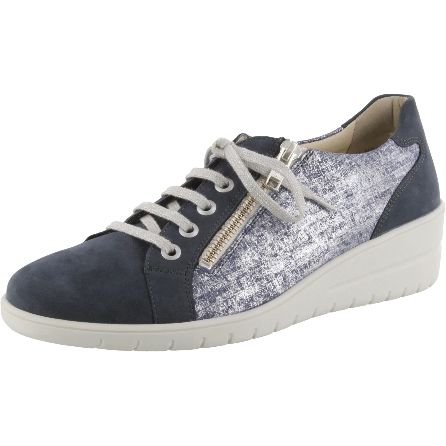 A stylish patchwork-look with different leathers or a summer color blue with a white sole to make you desire sun and sea! Insoles are removable (perfect for orthopedic insoles!)